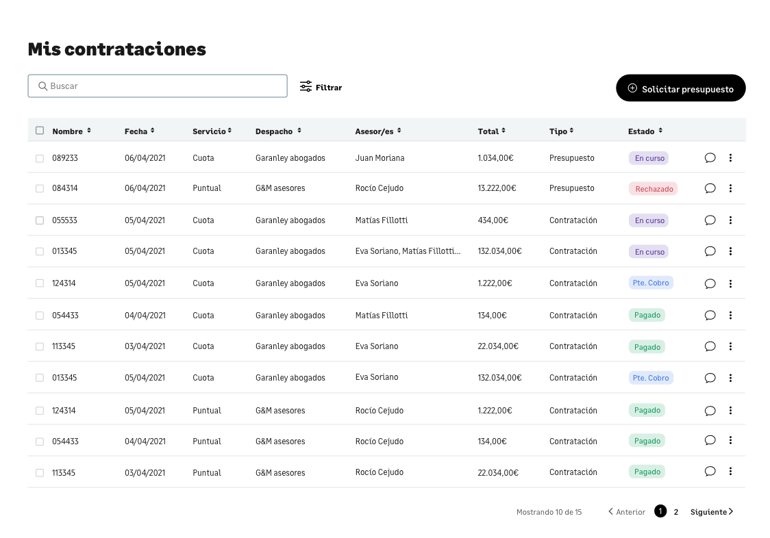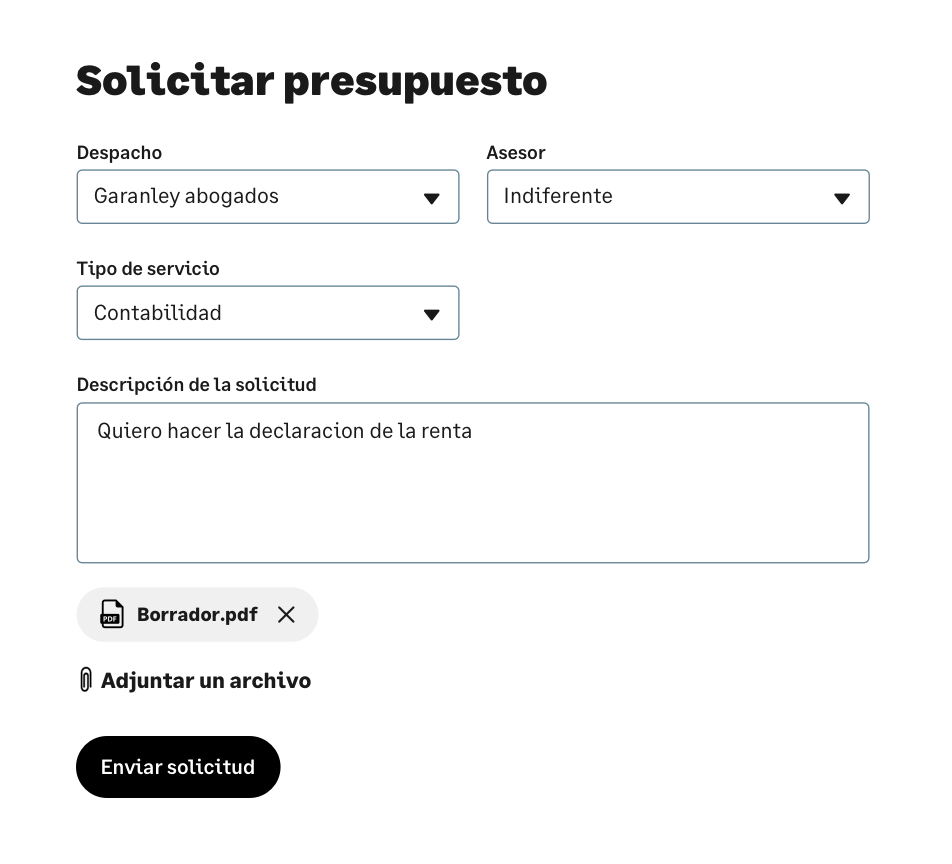 Ir al buscadorPide un presupuesto directamente o contrata un servicio de forma 100% online y empieza a trabajar con tu asesor, consultar el estado de tu negocio o revisar cualquier documentación en un entorno seguro, ágil y con todos los procesos automatizados.
